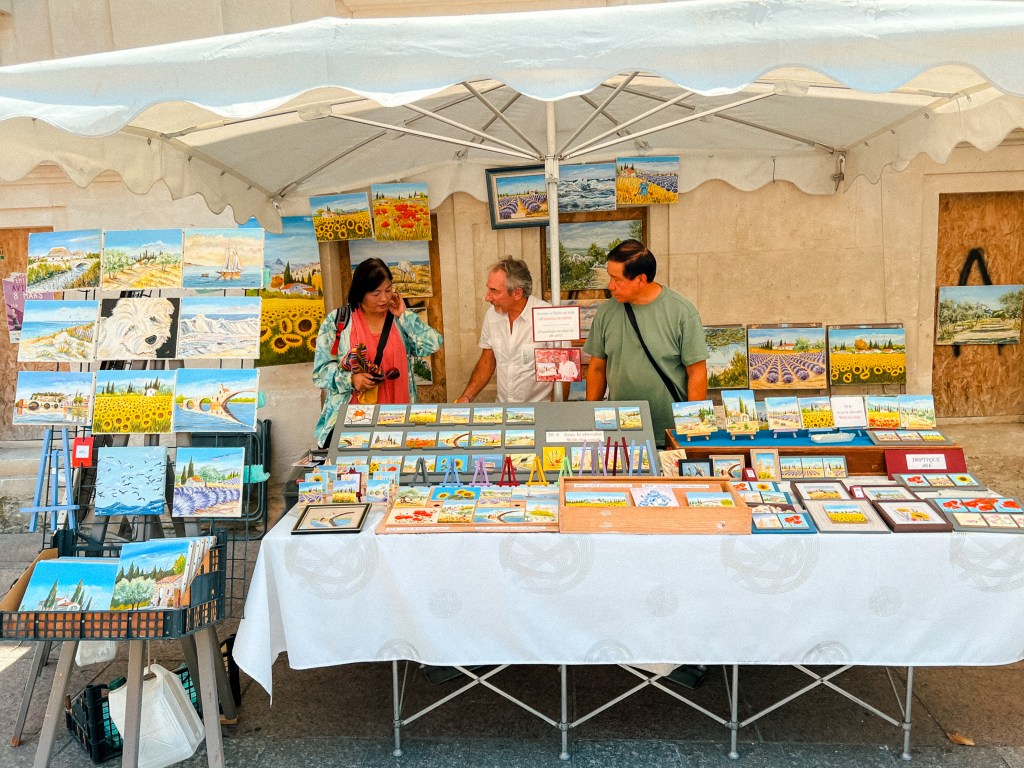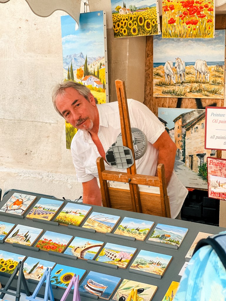 在亞維儂街頭,每個擺攤賣畫的人,都是畫作的創作者。他們不是從別處批來、也不是為了迎合市場,而是靜靜地、堅定地坐在自己的作品旁邊。這裡的畫有重量——是靈魂留下的筆觸,是一段段生活的回聲。謝謝這些藝術家,他們用自己的生命創造記憶,也讓我可以帶走某些有形的痕跡,把這座城的靈魂收藏起來。